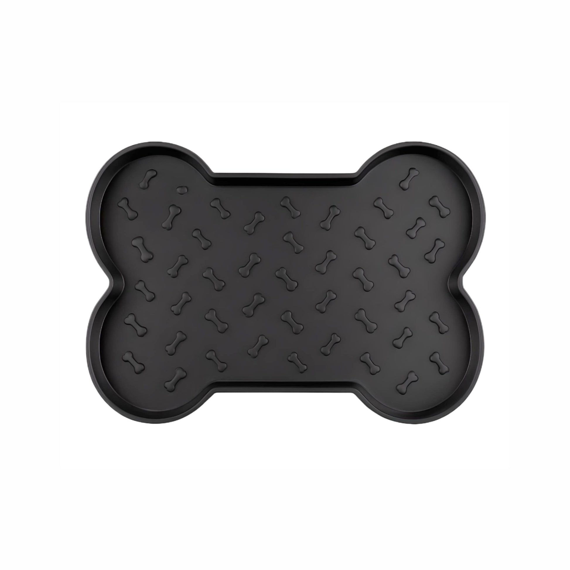 Bone-shaped Spill-Proof Dog Feeding Mat, prevents splashes and retains spills. Spill-Proof Dog Mat have raised edges for maximum spill capacity, a slip-resistant, bone-embossed surface, and anti-skid feet to prevent slips, slides, noise and floor damage.